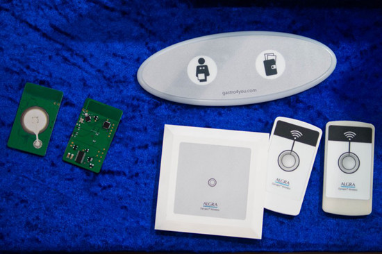 在文章最后,筆者想要介紹一款能源采集方面的產品。在展會上,瑞士公司Algra所開發的這些開關讓我記憶猶新。他們的運行依賴于壓電效應——開關當中的微型金屬板可以記錄下僅數微米的按壓,并將其轉換成能源來發送無線信號。
